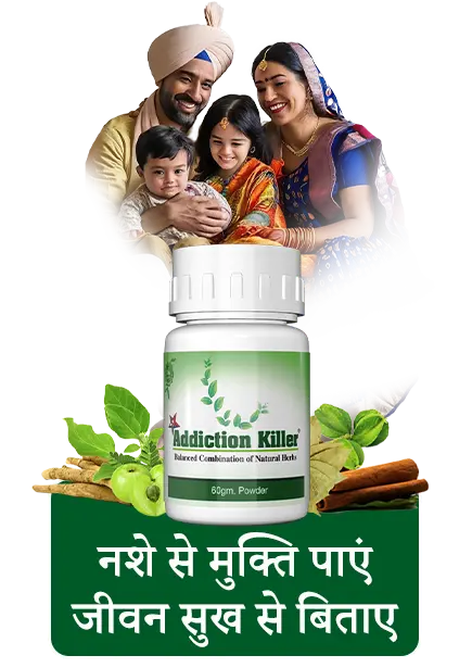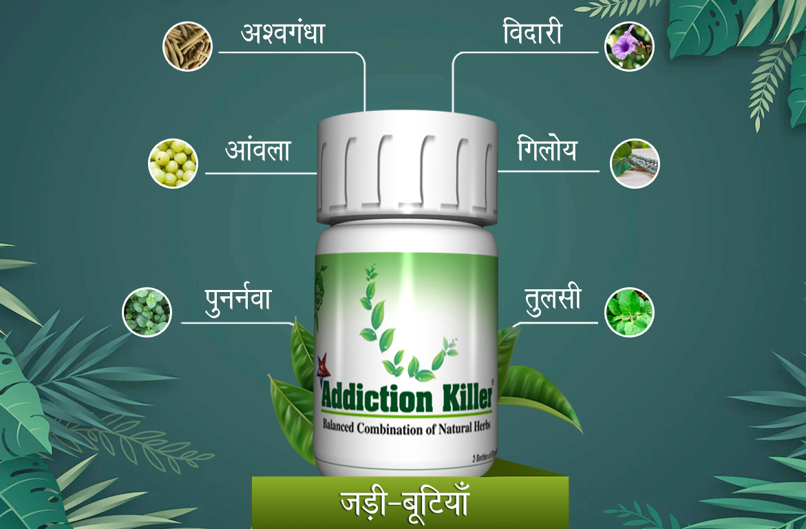 Addiction Killer एक 20 जड़ी-बूटियों का आयुर्वेदिक मिश्रण है जो बिना किसी साइड इफेक्ट के आपकी नशे की लत को दूर करने में आपकी मदद करती है।